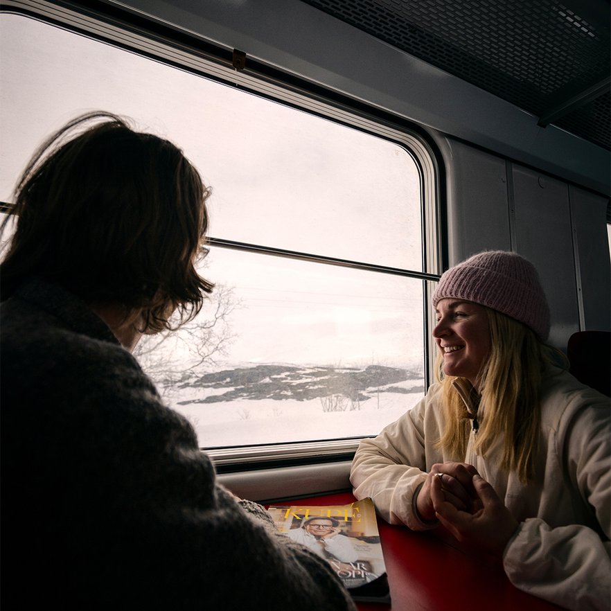 Arctic Train kör på den historiska Ofotbanan och är anpassat för dig som vill ha det lilla extra. Tåget har stora fönster för maximal utsikt och ofta finns guider eller appar med berättelser om den dramatiska naturen och historien längs vägen.