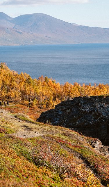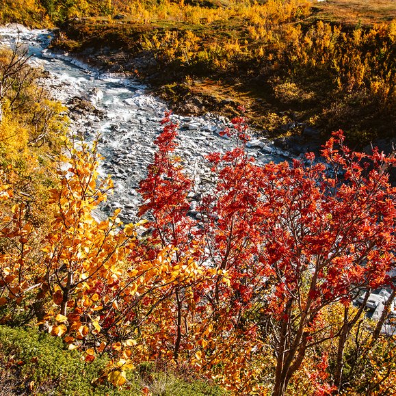 Hösten är de sprakande färgernas årstid. Lugnet infinner sig och om du har tur kan du se norrsken på kvällarna. En perfekt årstid att vandra i ett myggfritt fjällen i lagom temperatur.
