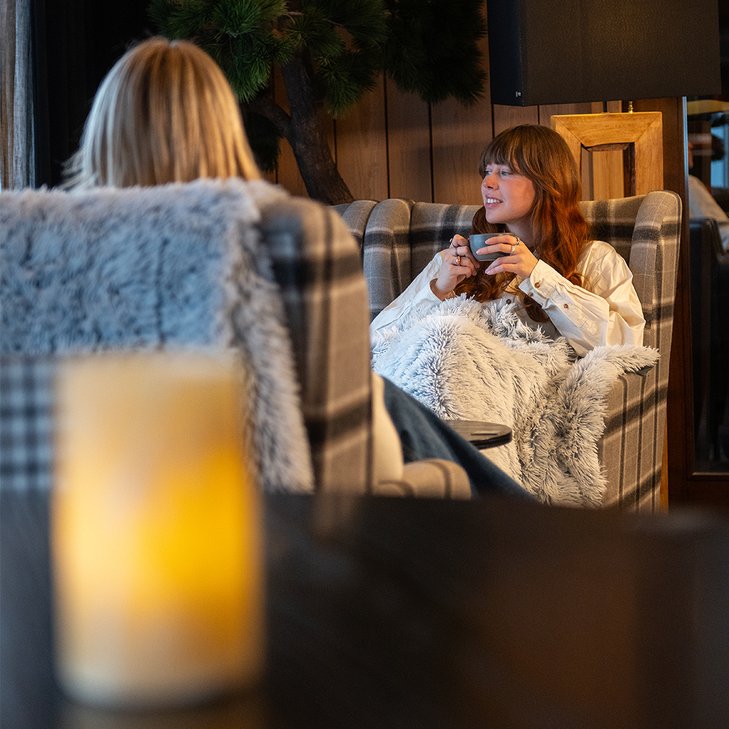 Här kan du slå dig ner i den lilla baren intill lobbyn för en god bit mat och dryck efter en dag i backen eller framför vår öppna spis med en god bok
