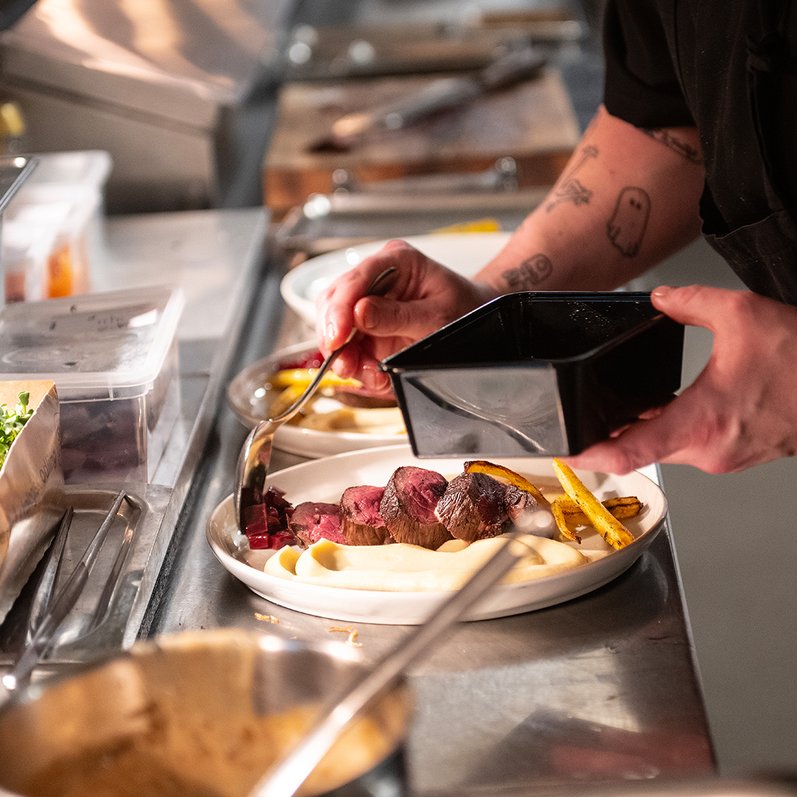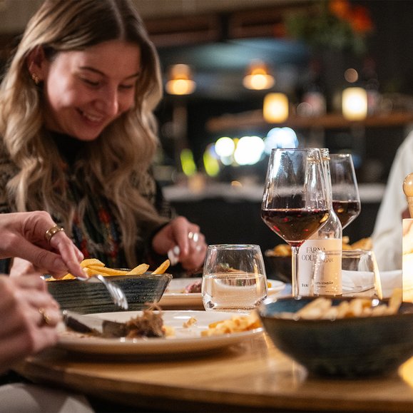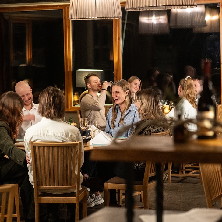 Slå dig ner för en stadig lunch som ger kraft till eftermiddagens åk, eller njut av en middag där menyn hämtar sin kraft direkt från de arktiska råvarorna och säsongens skiftningar.